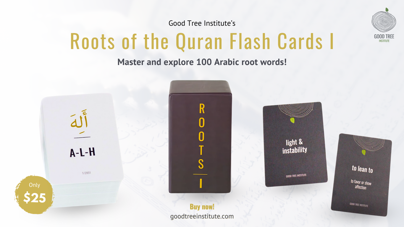 Learn the most frequent root words in the Quran at your own pace in Roots of the Quran I and Roots of the Quran II (newly added). Purchase a set of your own Roots of Quran Flash Cards to help your studies.