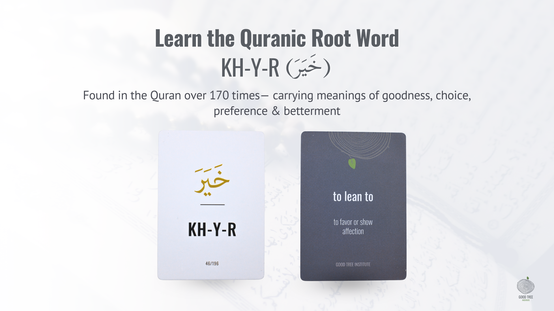 The root KH-Y-R is just one of 100 essential roots that open the door to a deeper understanding of the Quran. At Good Tree Institute, our Roots of the Quran I Course is an 8-week self-paced program guided by Dr. Nadia Katrangi. In this course, you’ll: